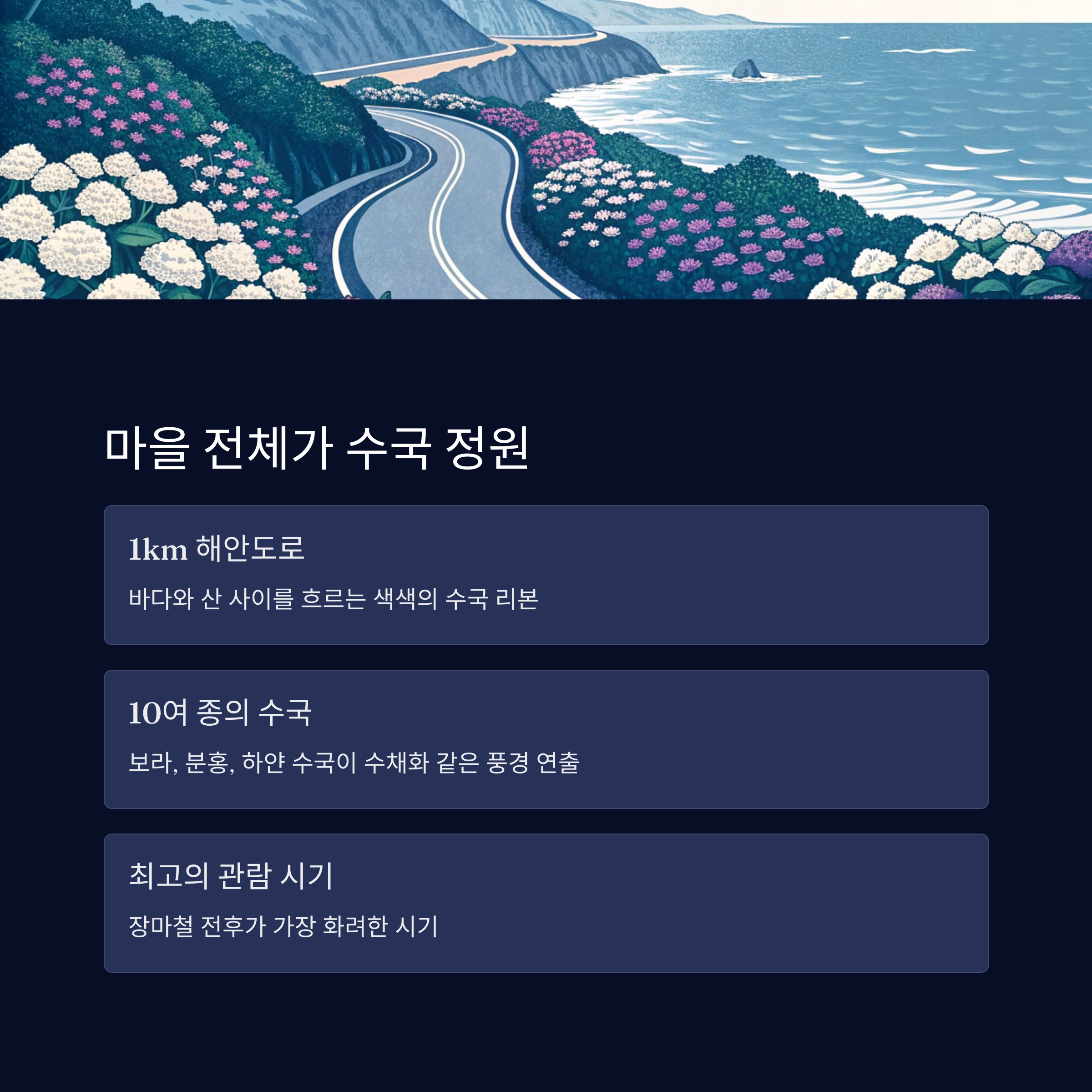 | 식재 수국 거리 | 1km 이상 해안도로를 따라 조성 |