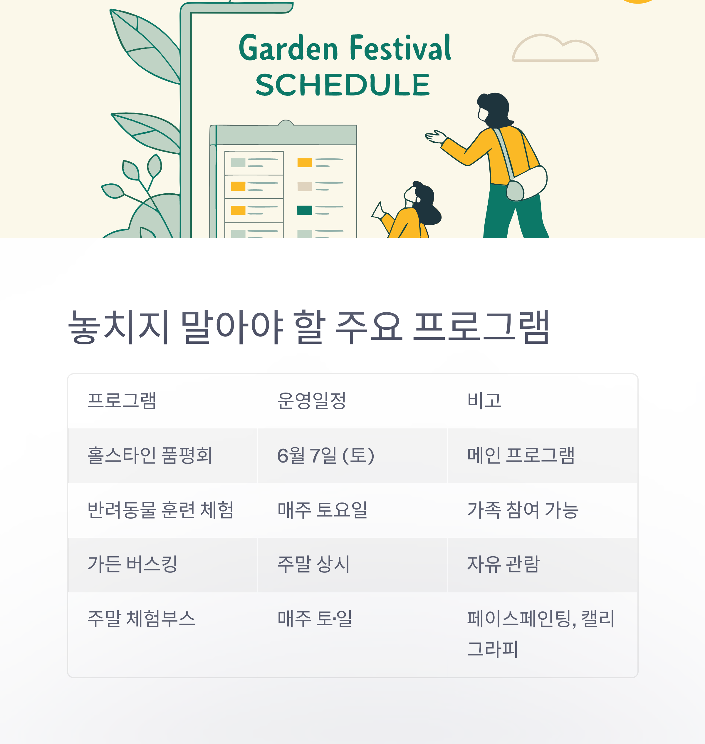 | 반려동물 훈련 체험 | 매주 토요일 | 가족 참여 가능 |