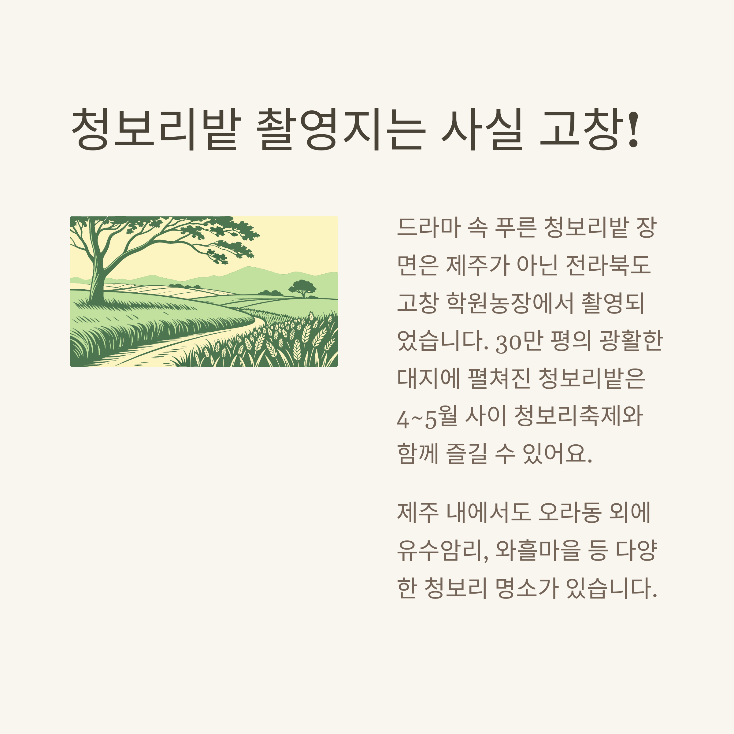 드라마 속 푸른 청보리밭 장면은 사실 제주가 아닌
