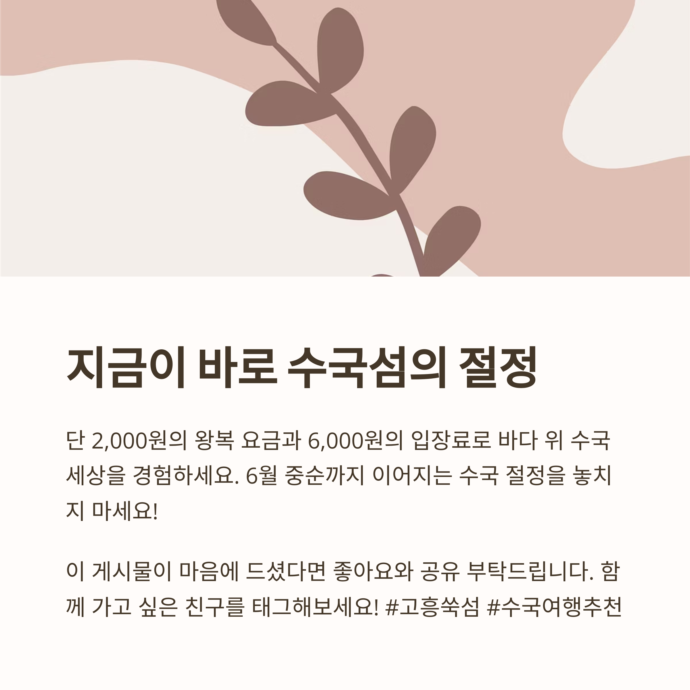 접근성, 자연 풍경, 힐링 요소 모두를 갖춘 환상적인 여행지입니다.