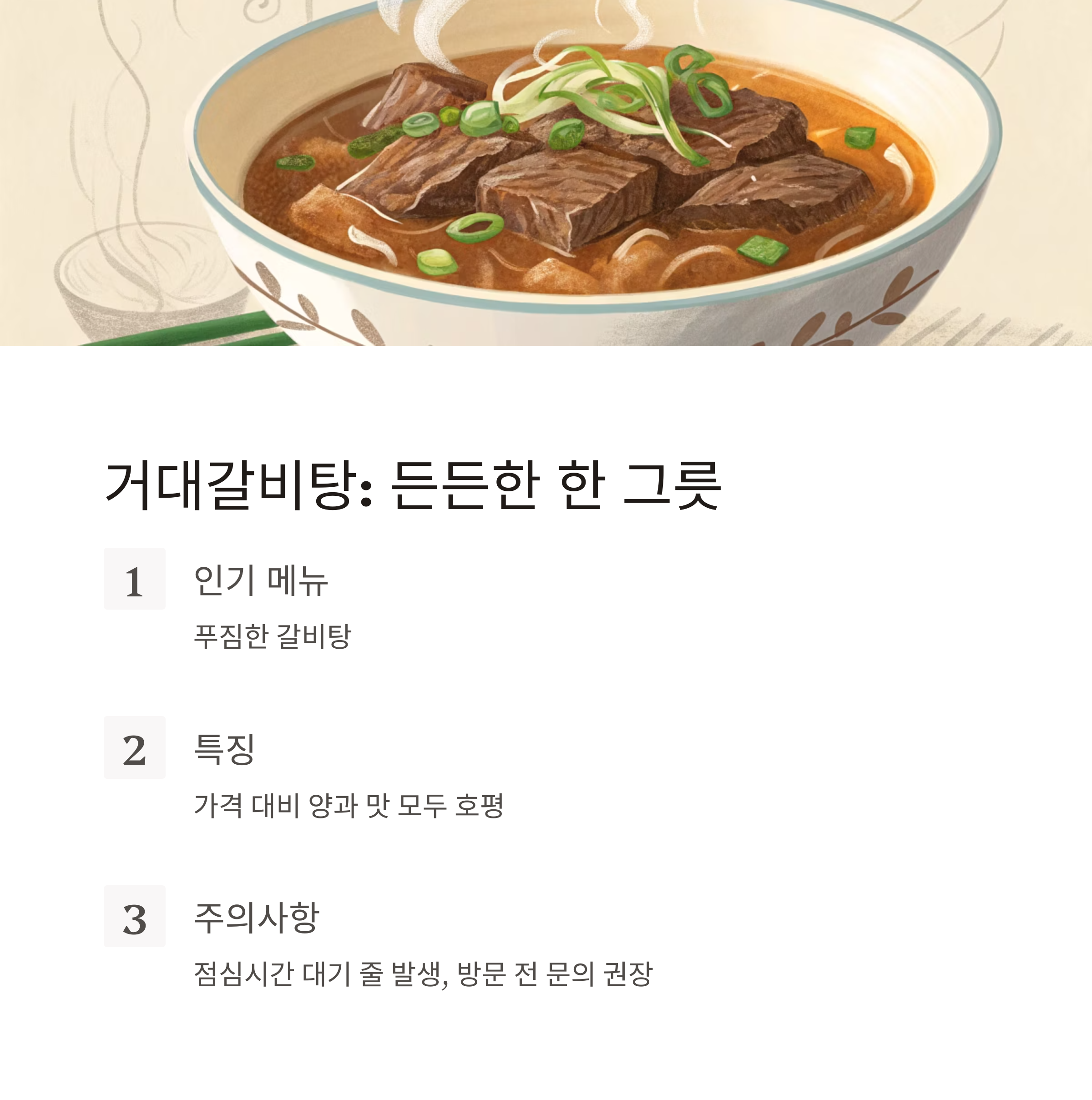 거대갈비탕: 든든한 한 그릇, 만족도 높은 갈비탕