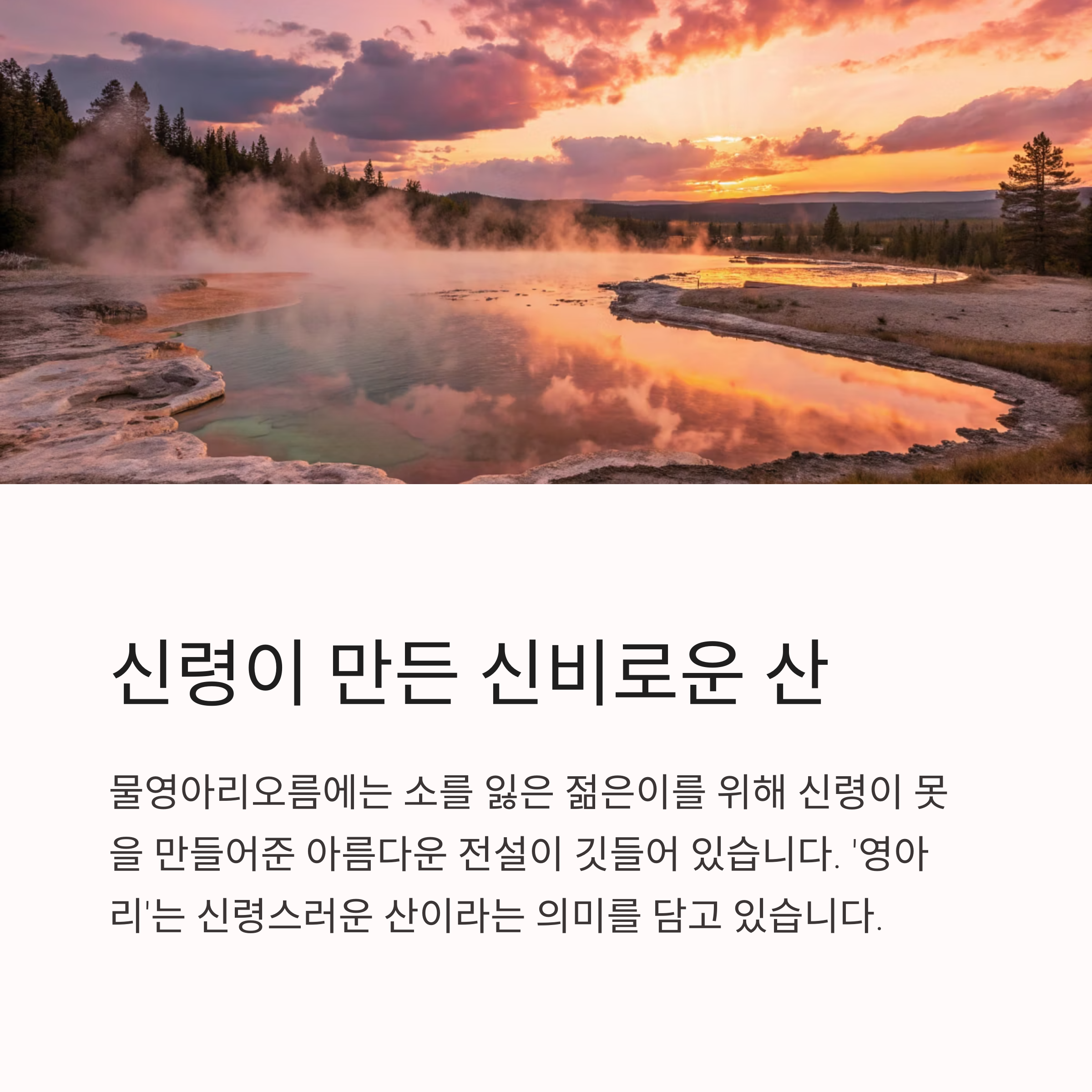 전설이 전해집니다. ‘영아리’는 신령스러운 산이라는 뜻을 담고 있으며