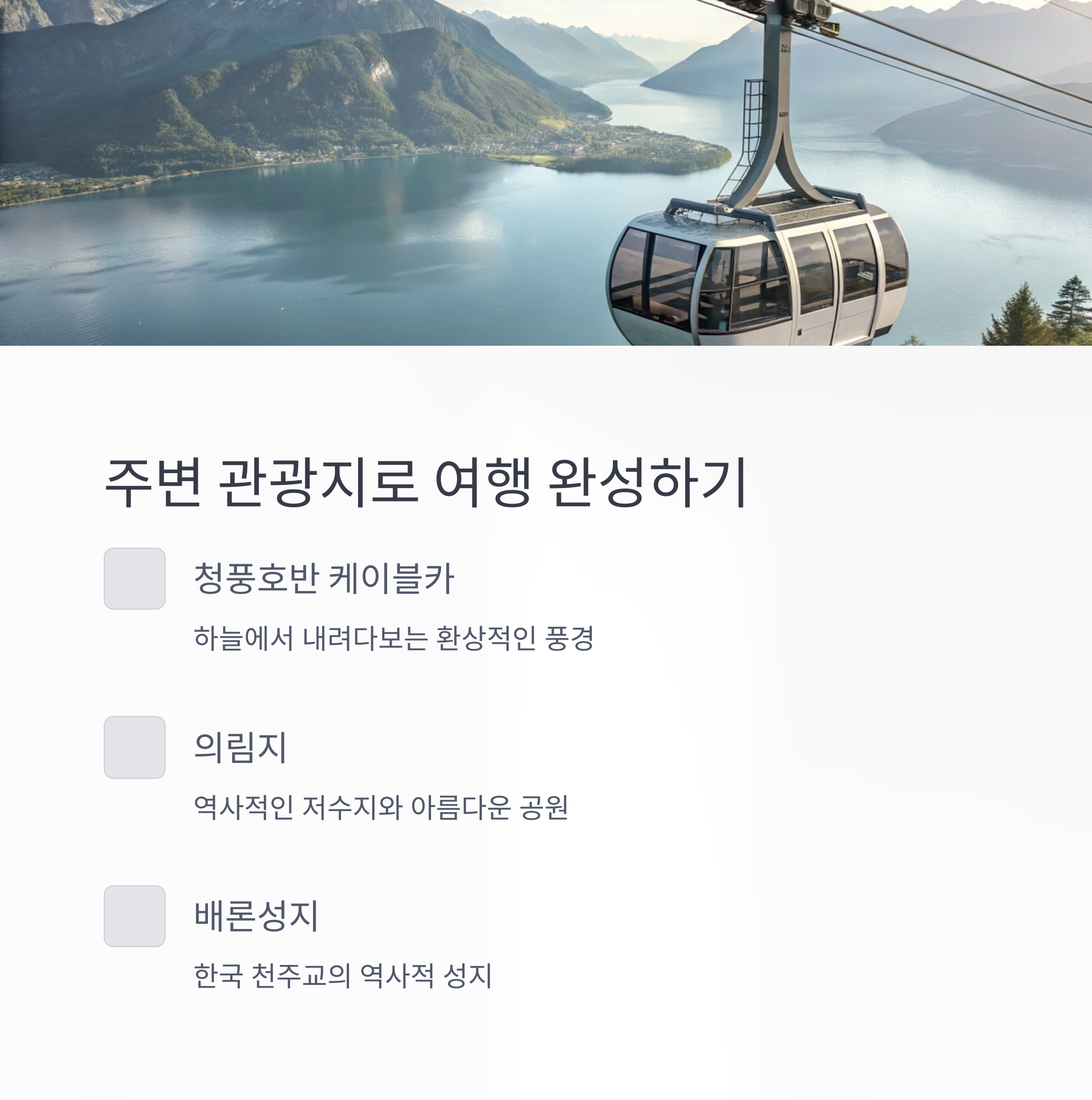 근처에 청풍호반 케이블카, 의림지, 배론성지도 있어요!