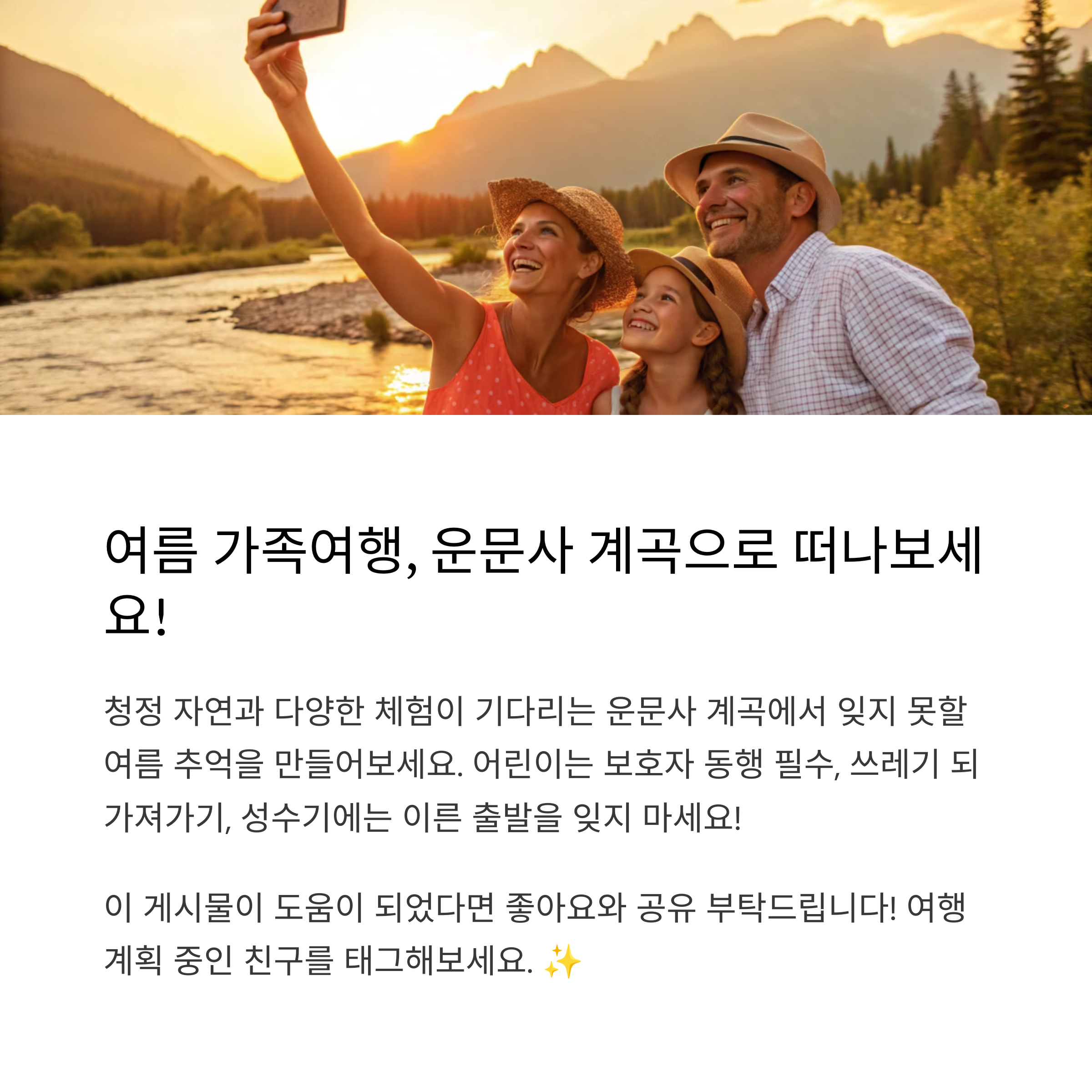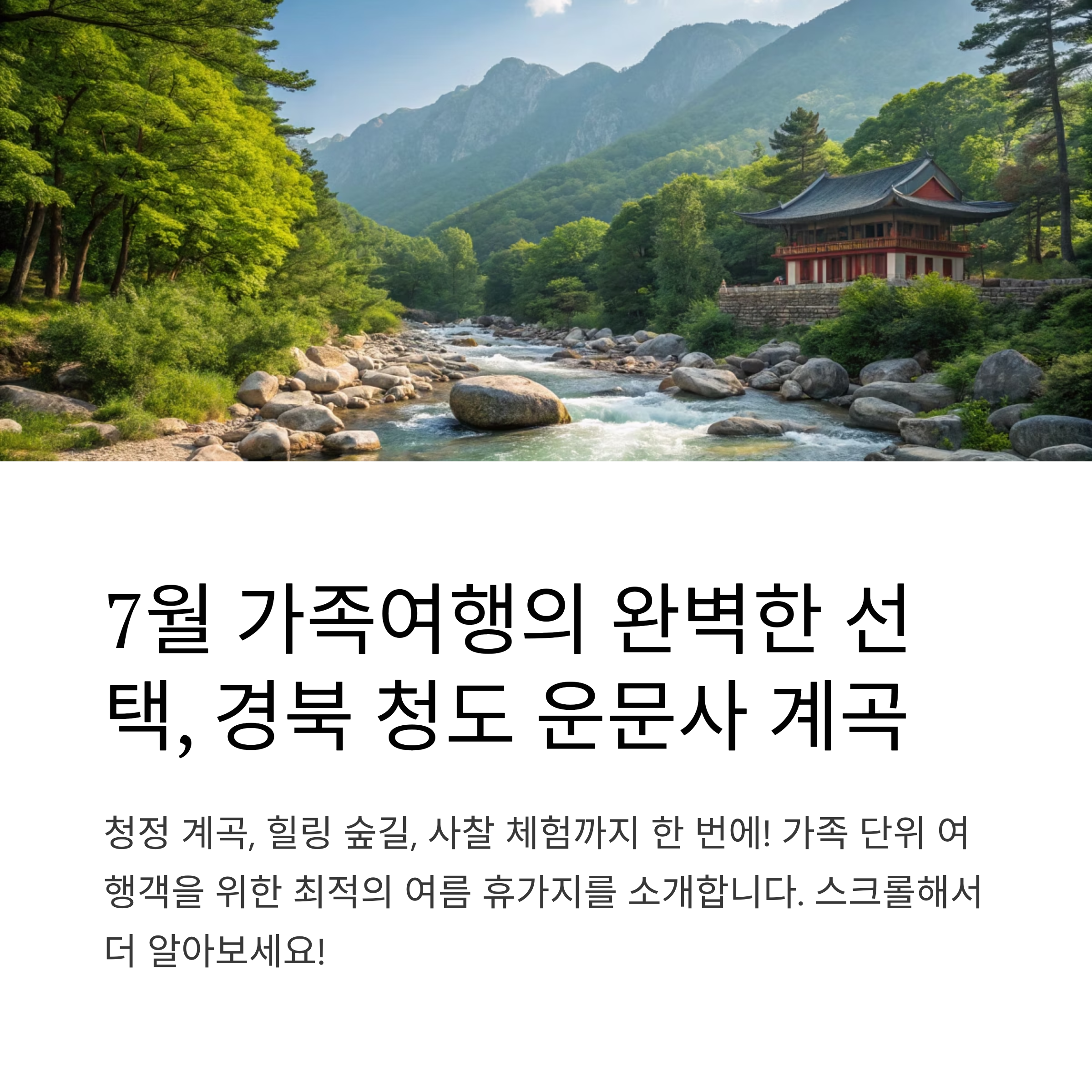 경상북도 청도군에 자리한 운문사 계곡은 자연 속에서의 여유로움과 전통 사찰의 고즈넉함을 동시에 누릴 수 있는 여름 명소입니다. 계곡물의 수질과 깊이, 편의시설 등에서 가족 단위 여행객에게 특히 적합하며, 인근 숙박과 체험 요소도 다양하게 구성돼 있어 7월 가족 피서지로 인기가 높습니다. 운문사, 트레킹 코스, 청도 대표 관광지까지 연계가 가능해 단순한 물놀이를 넘어선 여름 여행을 계획할 수 있습니다.