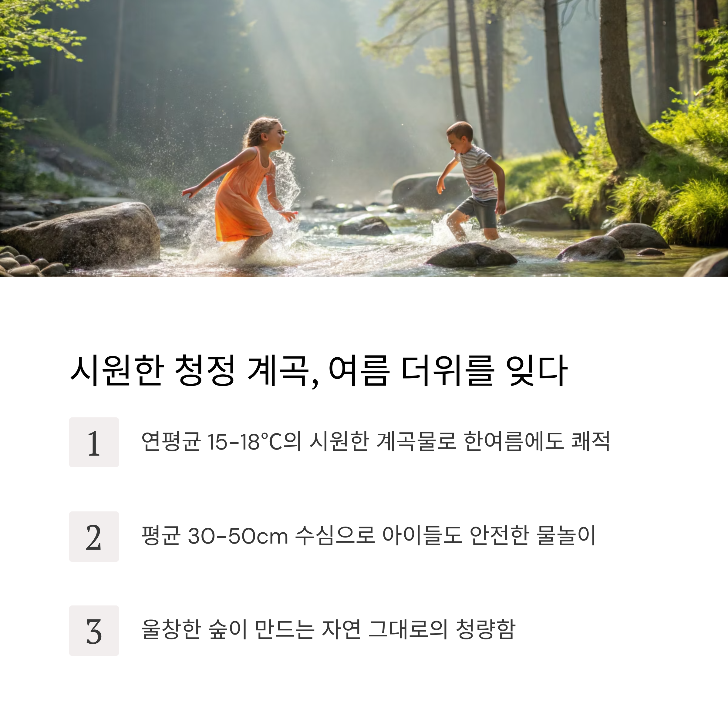 여름철 더위에도 시원하게 몸을 식혀주며, 탁월한 수질을 자랑합니다.