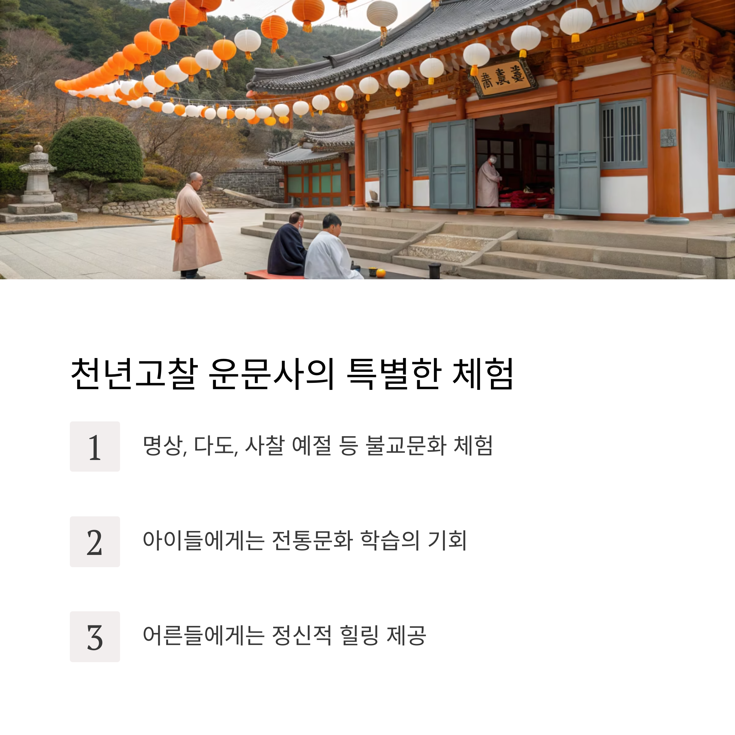 명상, 다도, 사찰 예절 등 불교문화를 체험할 수 있는