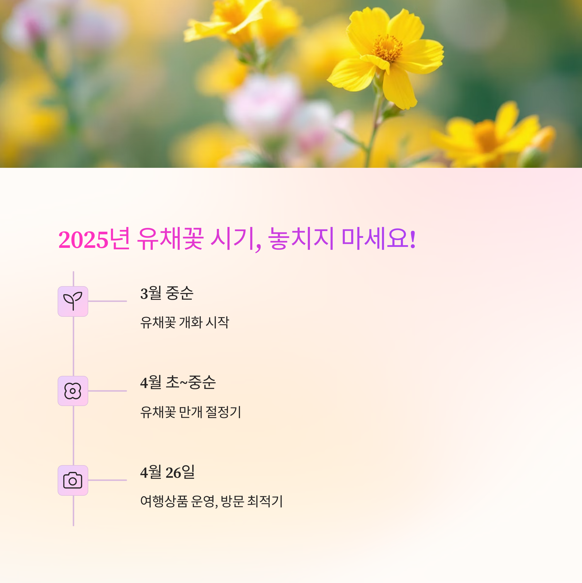 | 유채꽃 개화시기 | 수성당 포토존 | 주변 관광지 |
