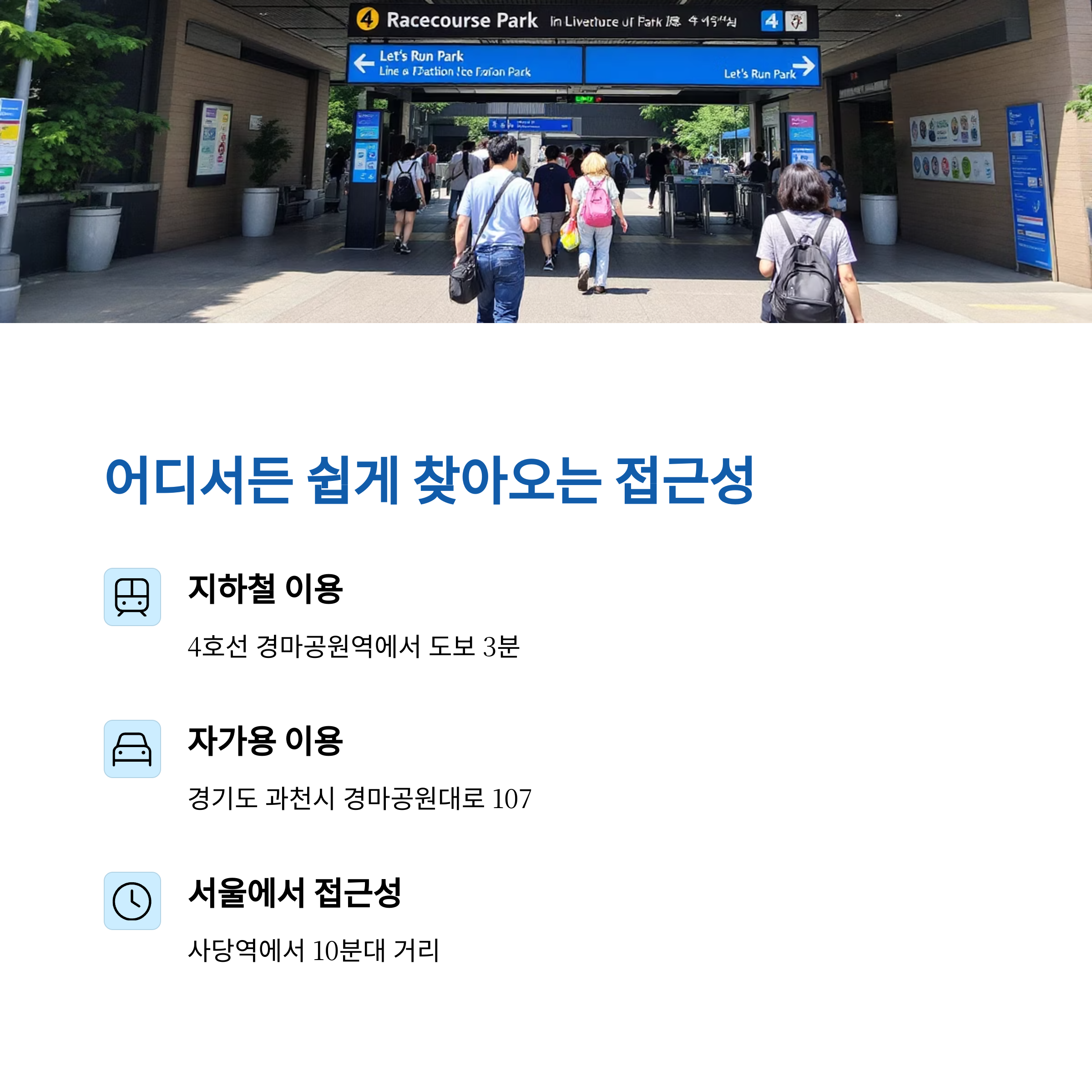 위치 및 교통 지하철 4호선 경마공원역 도보 3분, 자차도 편리