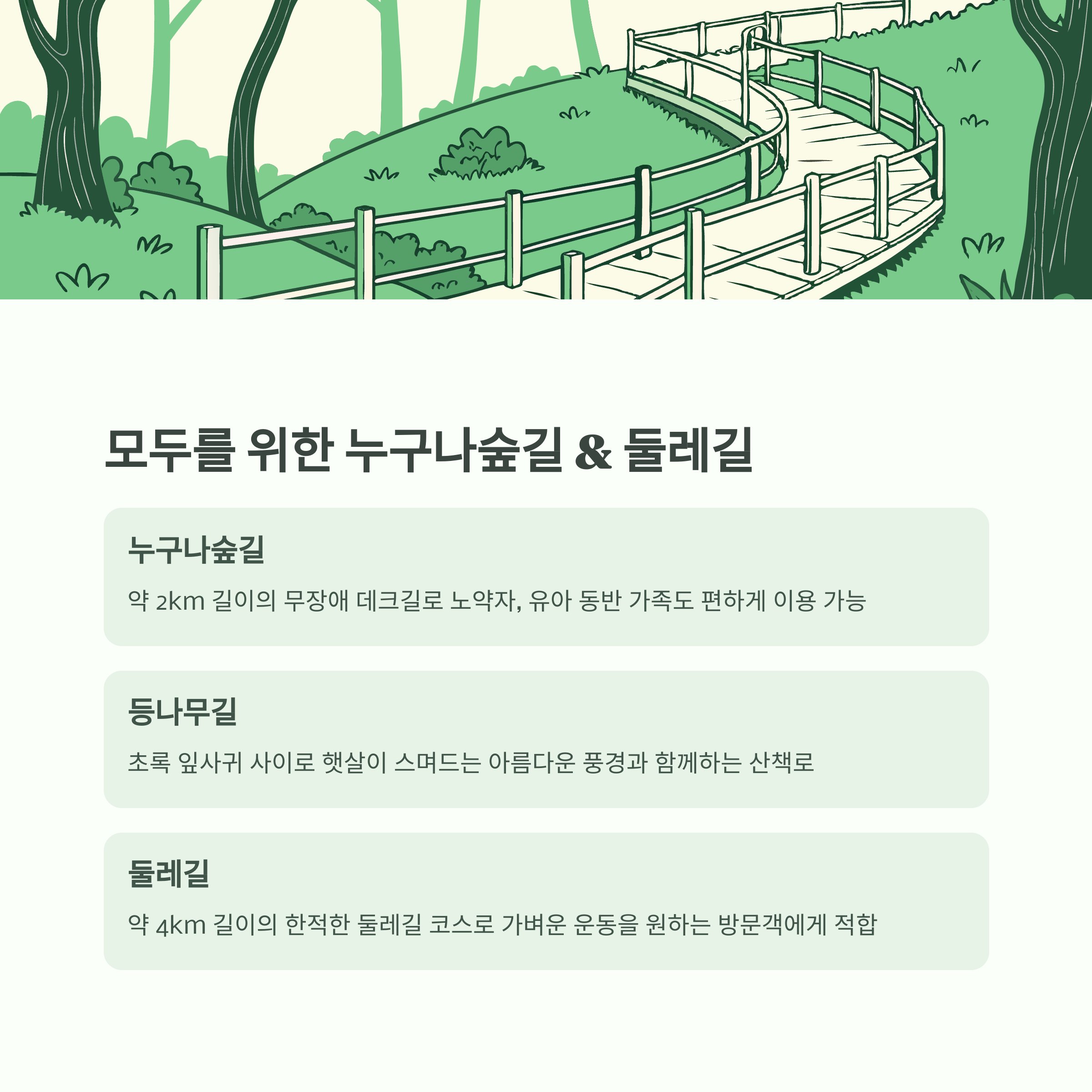 | 데크길 산책 | 자연생태박물관 체험 | 버스 노선 5번, 700번 등 |