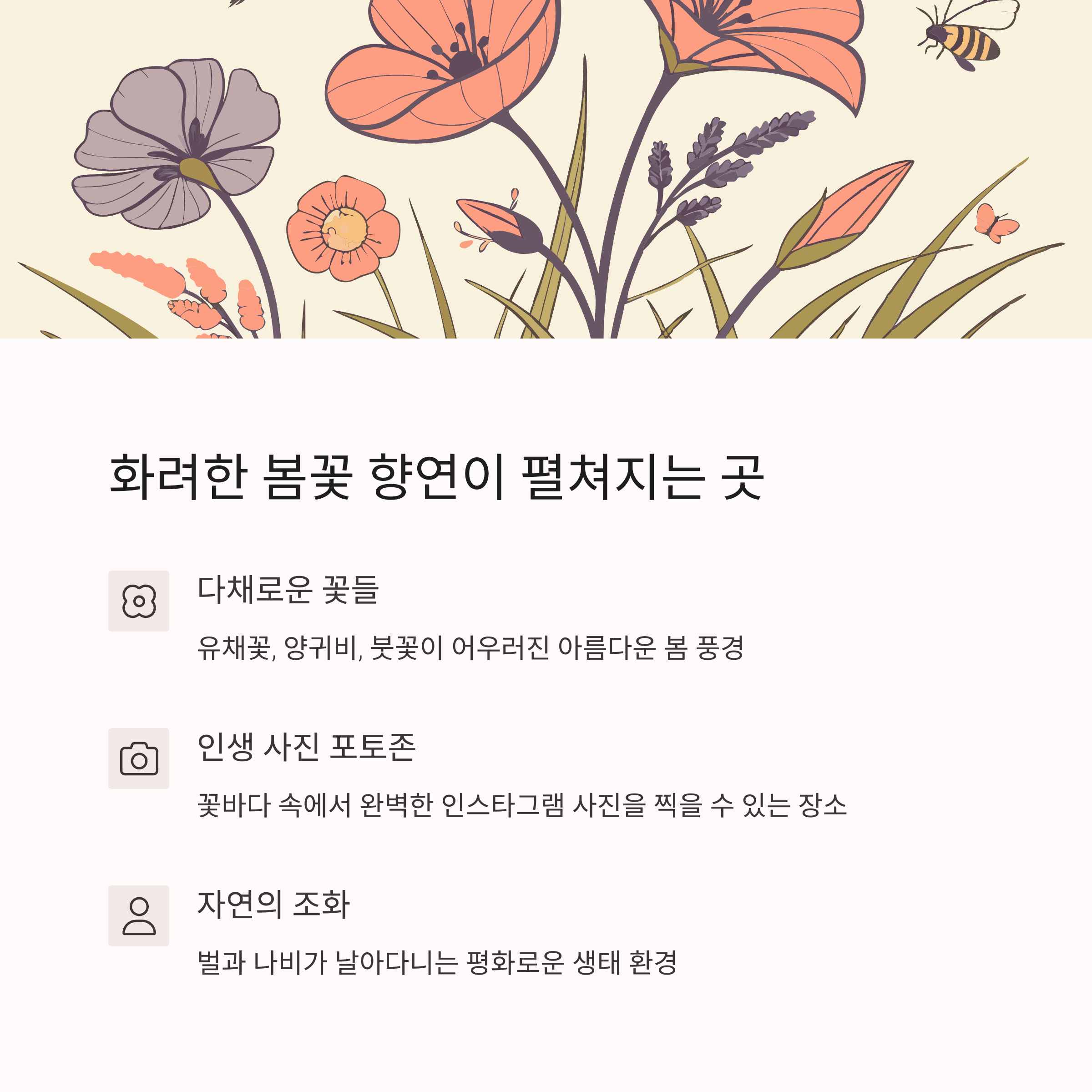 파로호 꽃섬이나 한반도섬을 방문해보신 적이 있으신가요? 계절별로 가장 좋아하는 꽃명소는 어디인가요? 댓글로 소중한 경험을 공유해주세요!