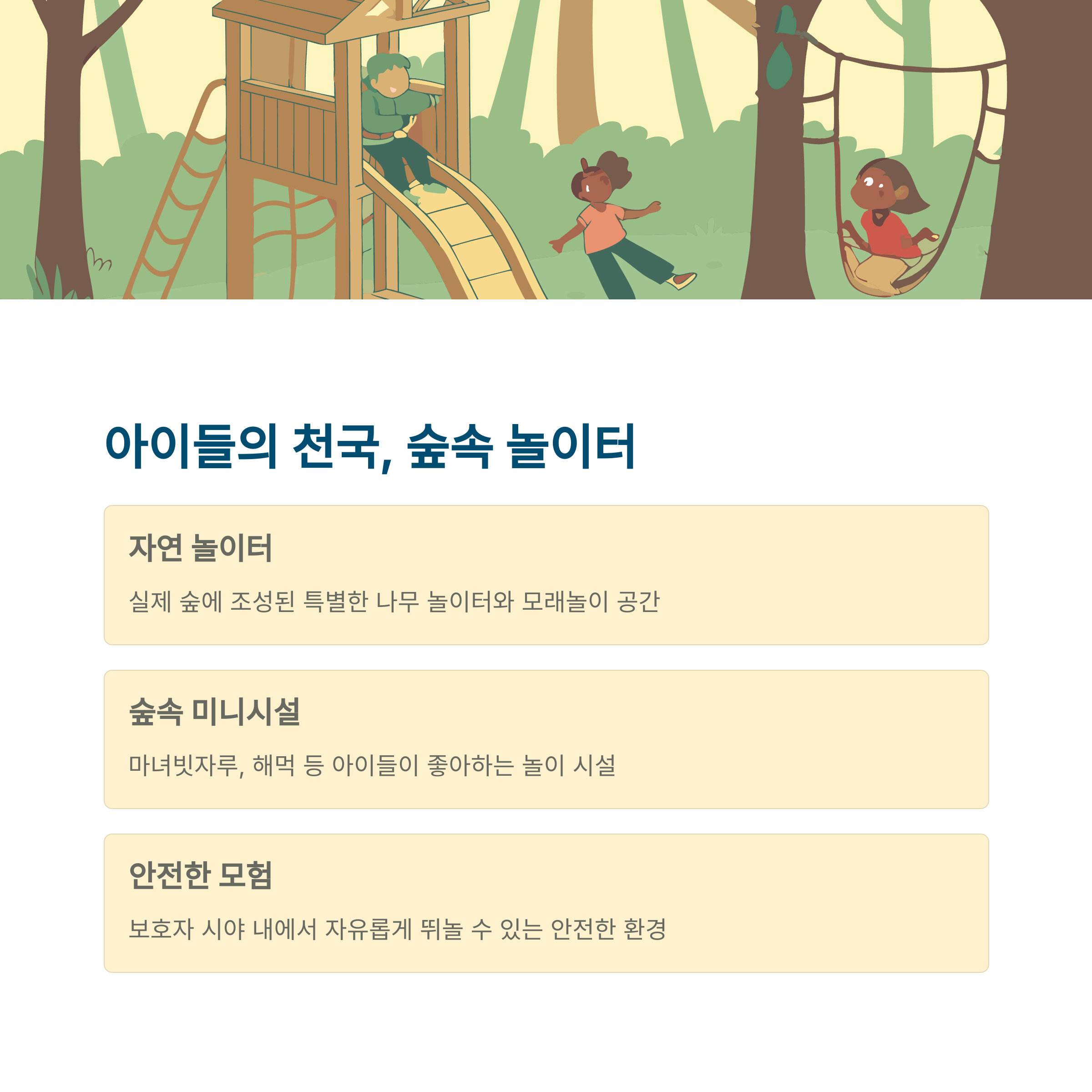 | 트리하우스 체험 | 나무 위 실제 구조물에서 즐기는 특별한 숙박 공간 |