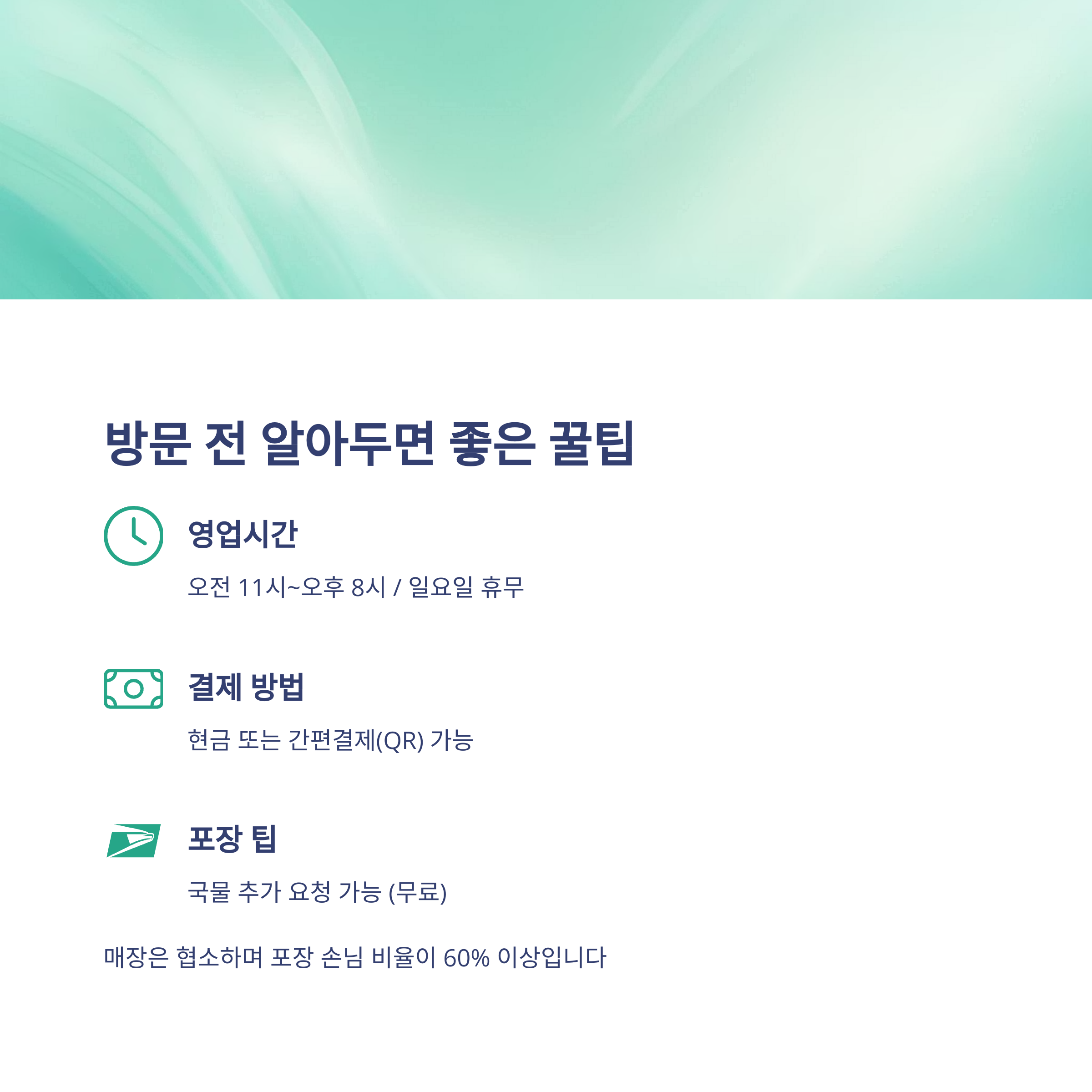 - 영업시간: 오전 11시~오후 8시 / 일요일 휴무