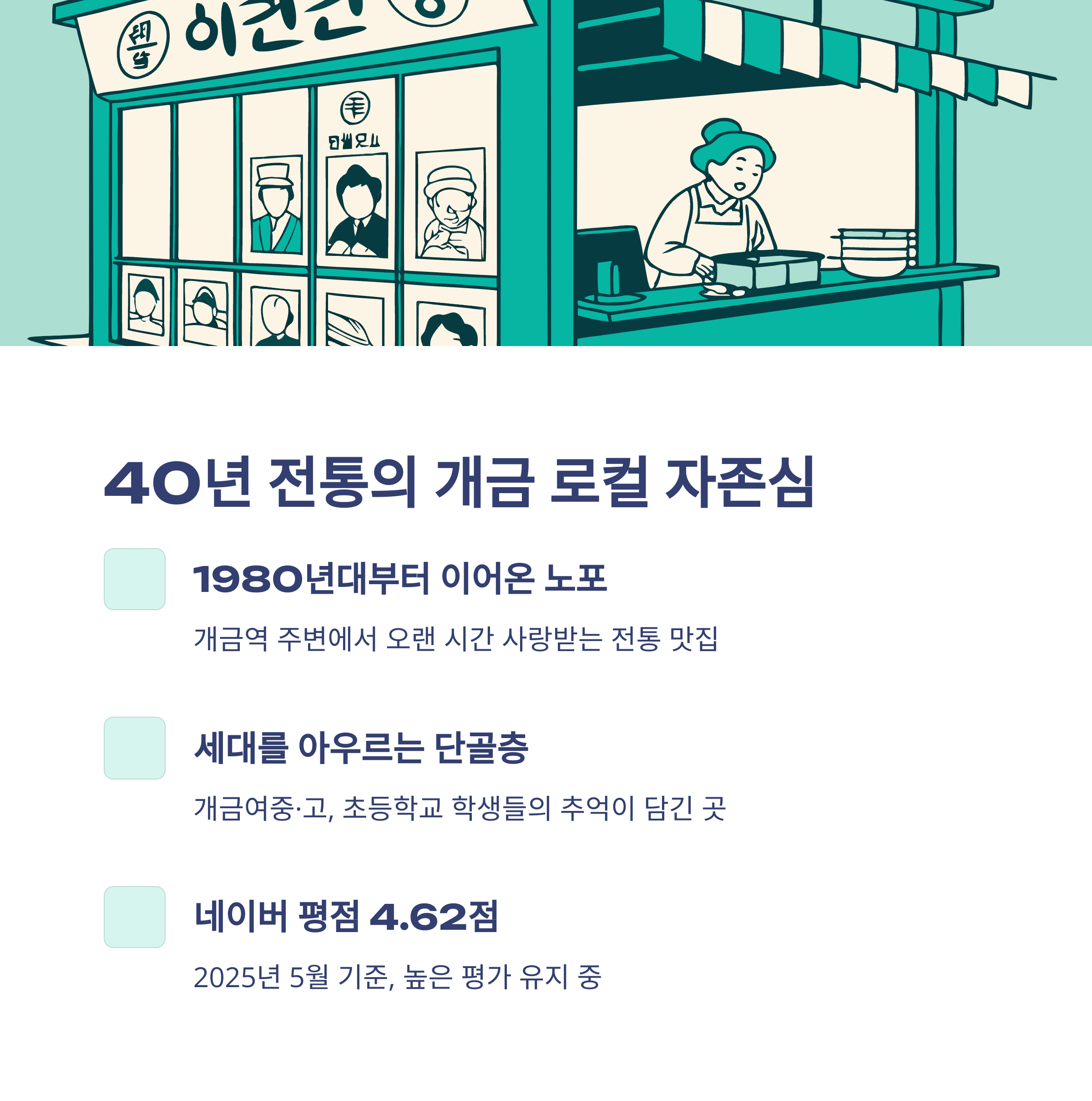 ‘엄마손떡볶이’는 1980년대 초부터 개금역 주변에서 분식 장사를 이어온 오래된 노포입니다. 특히 개금여중·고등학교, 개금초등학교 학생들의 추억이 깃든 맛집으로 세대를 아우르는 단골층을 자랑합니다. 평일 오후에도 줄이 길게 늘어설 만큼 꾸준한 인기를 얻고 있으며, **네이버 지도 기준 평점 4.62점(2025년 5월 기준)**으로 높은 평가를 유지하고 있습니다.