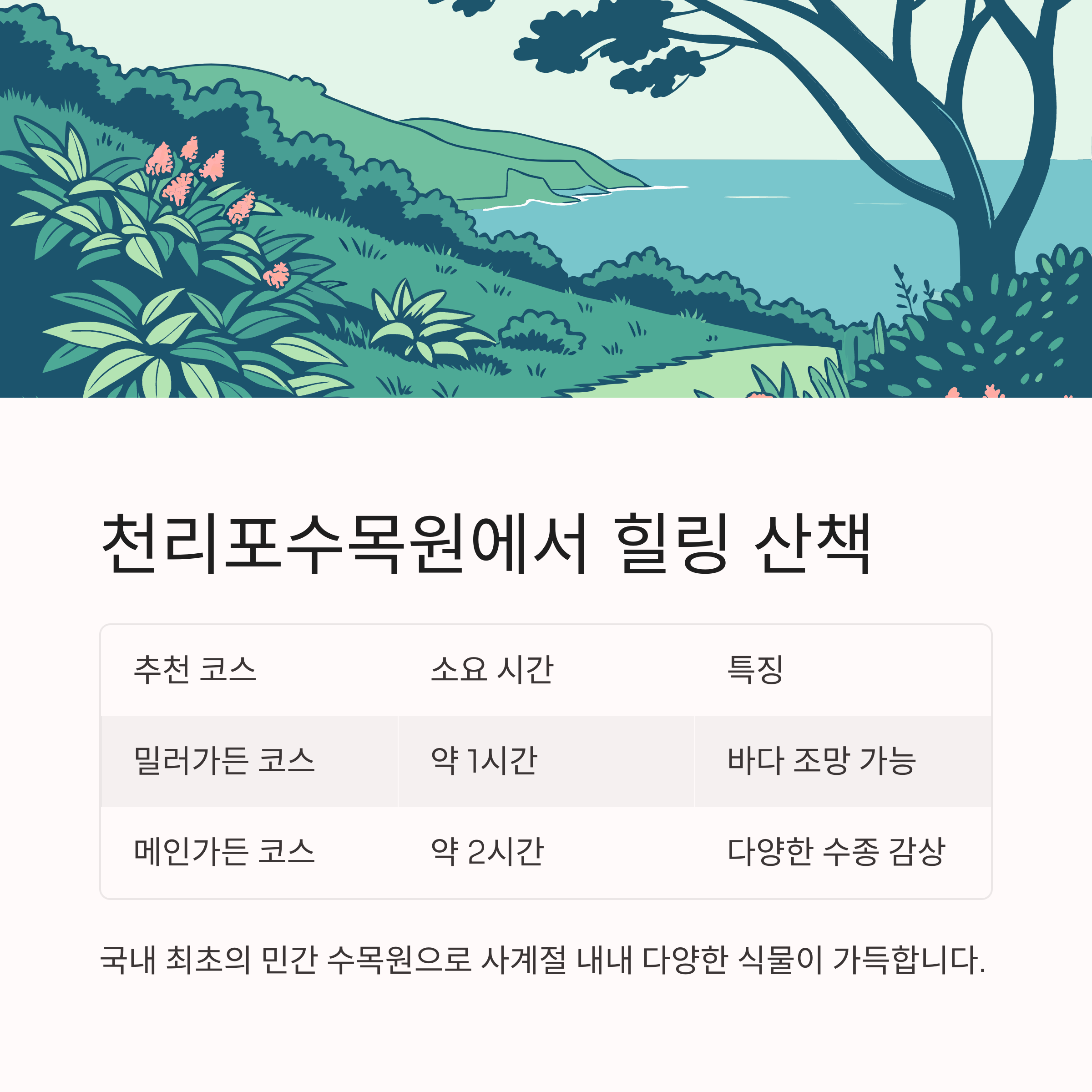 메인가든 코스 약 2시간 다양한 수종 감상 가능