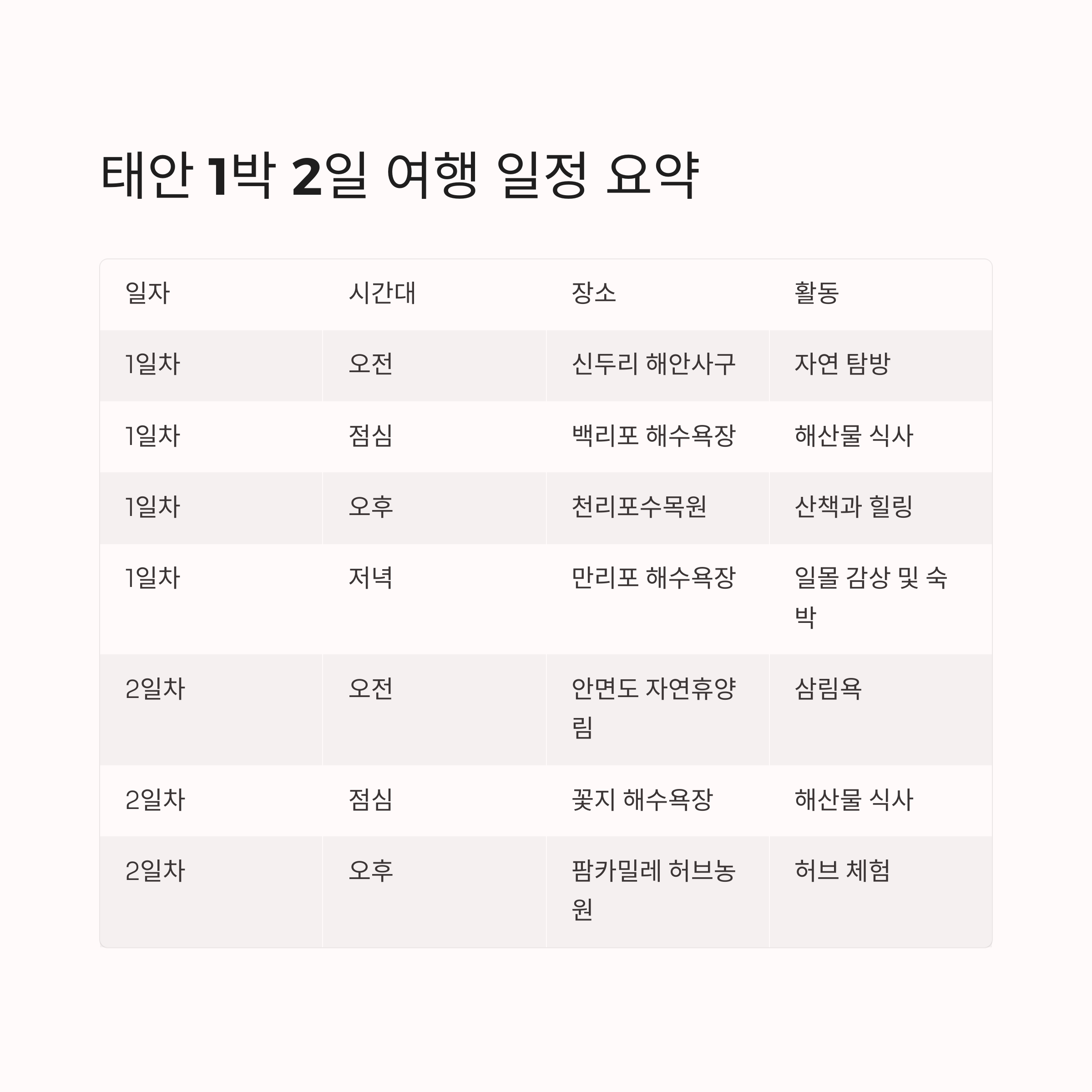 1박 2일 태안 여행 요약 일정