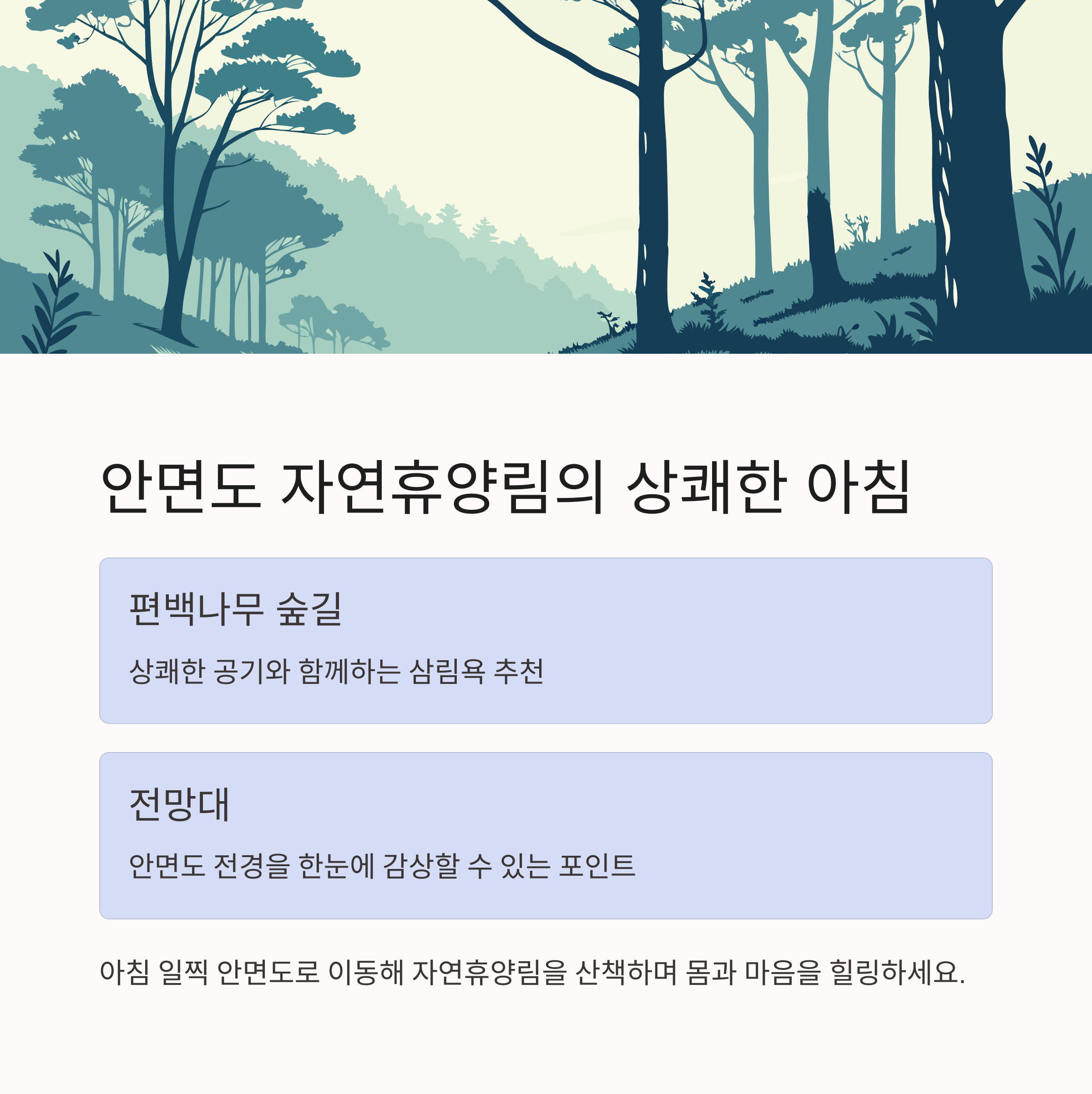 아침 일찍 안면도로 이동해 자연휴양림을 산책해 보세요.