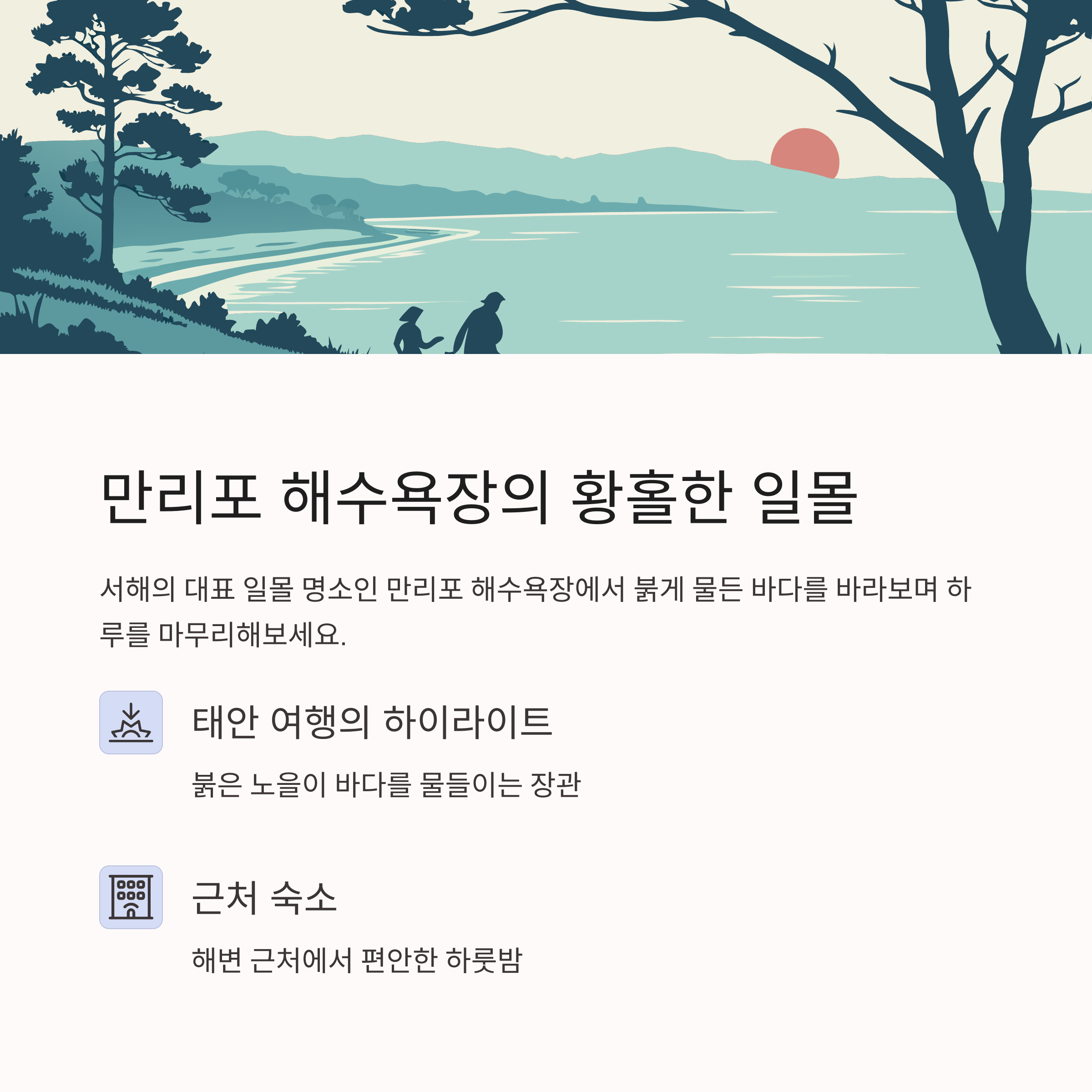 "만리포의 일몰은 태안 여행의 하이라이트"라고 할 수 있습니다.