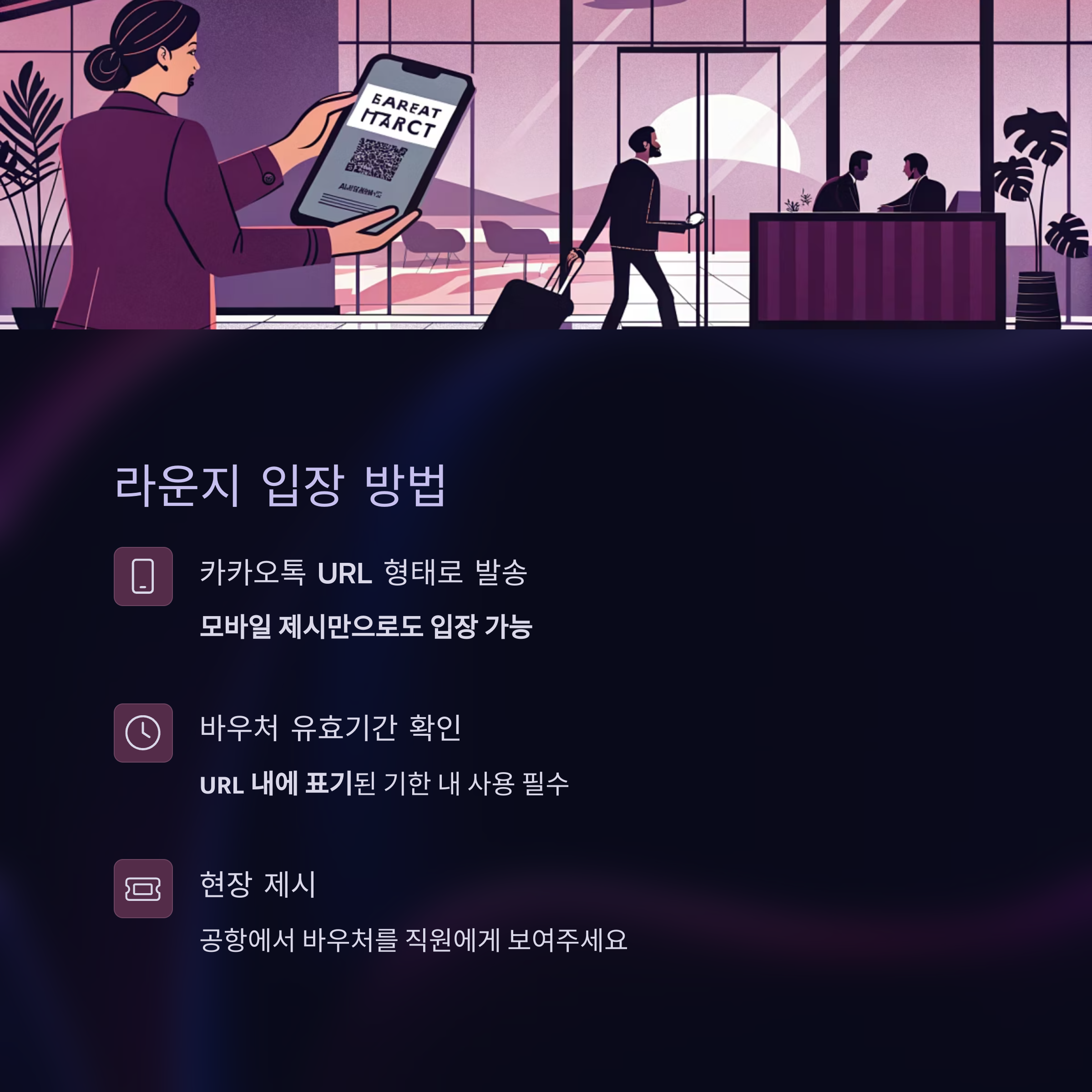 라운지 입장은 이렇게! 바우처 사용법 안내