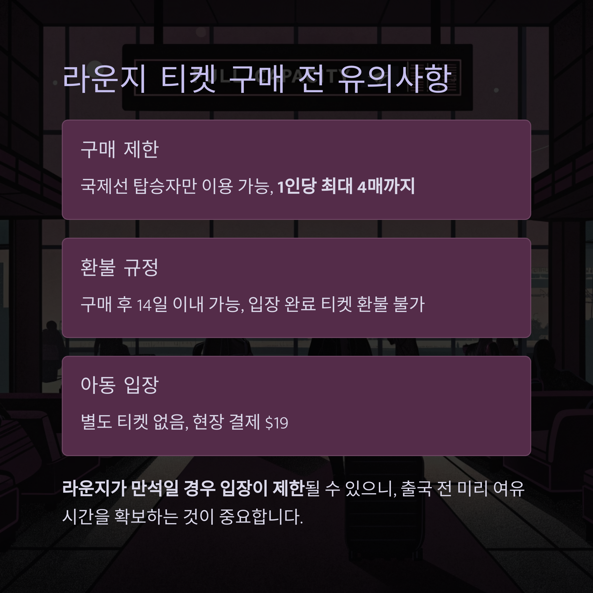 라운지 티켓 구매 전 꼭 확인할 유의사항