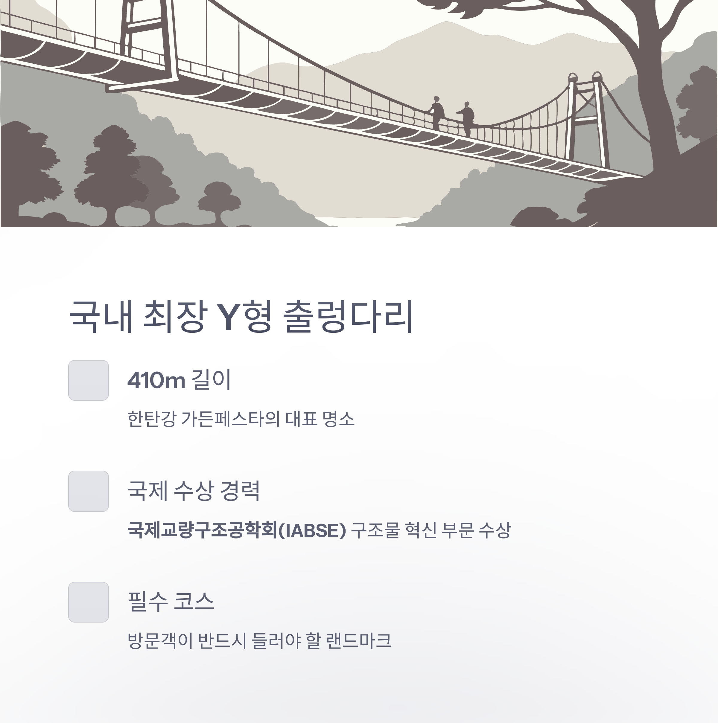 국제교량구조공학회(IABSE)에서 구조물 혁신 부문 수상까지 받은 이 출렁다리는