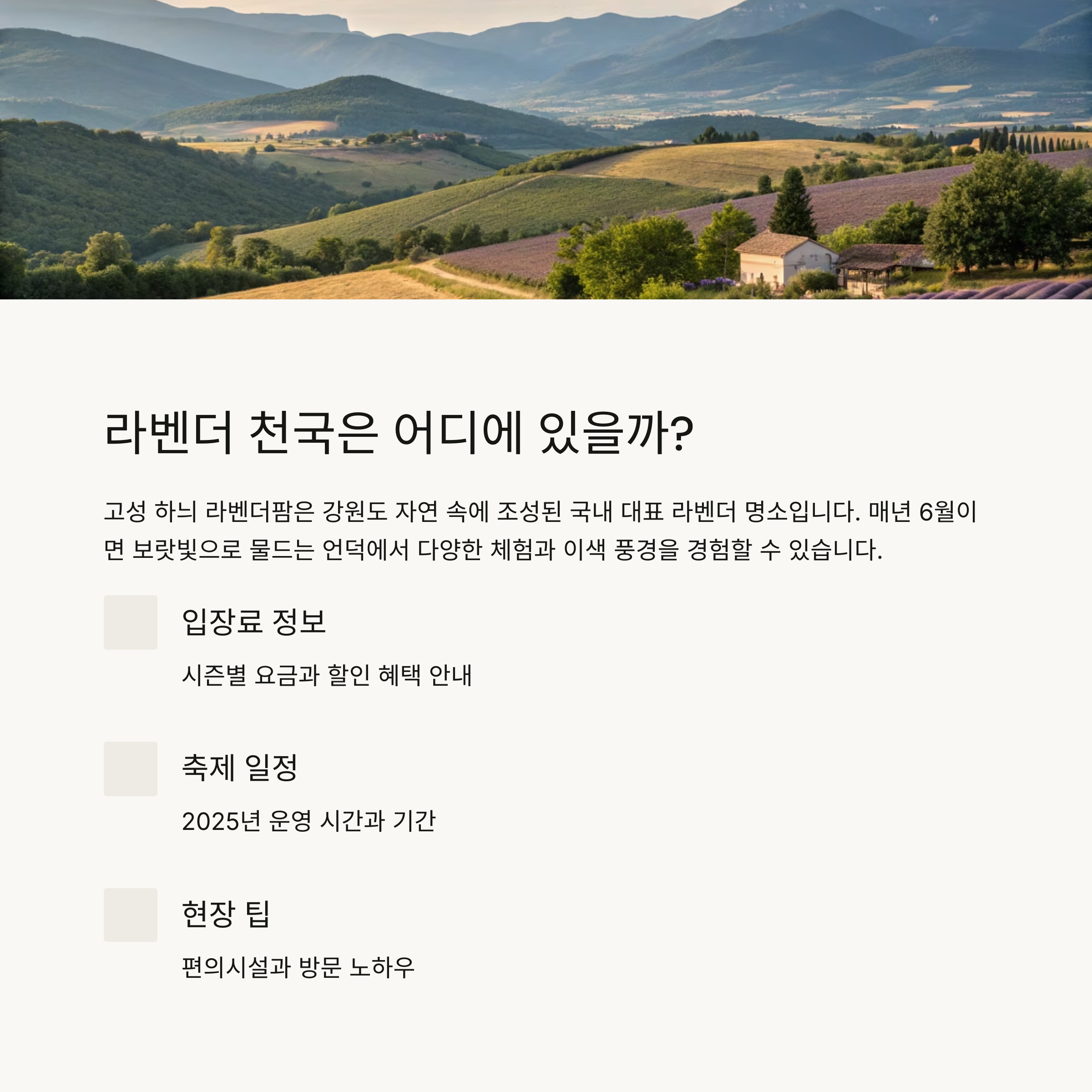 고성 하늬 라벤더팜 완벽 가이드: 입장료, 축제 일정, 현장 팁까지