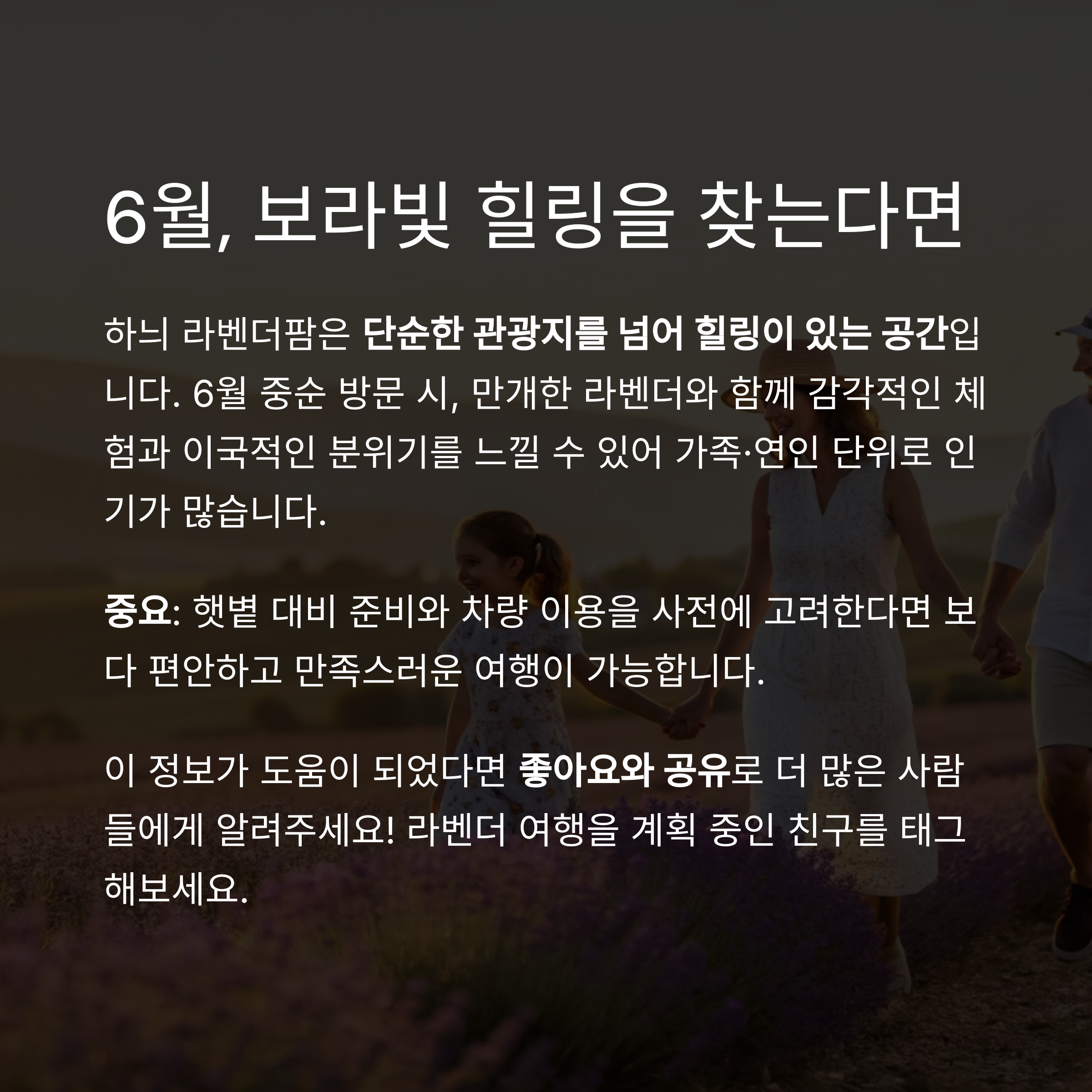 6월 중순 방문 시, 만개한 라벤더와 함께 감각적인 체험과