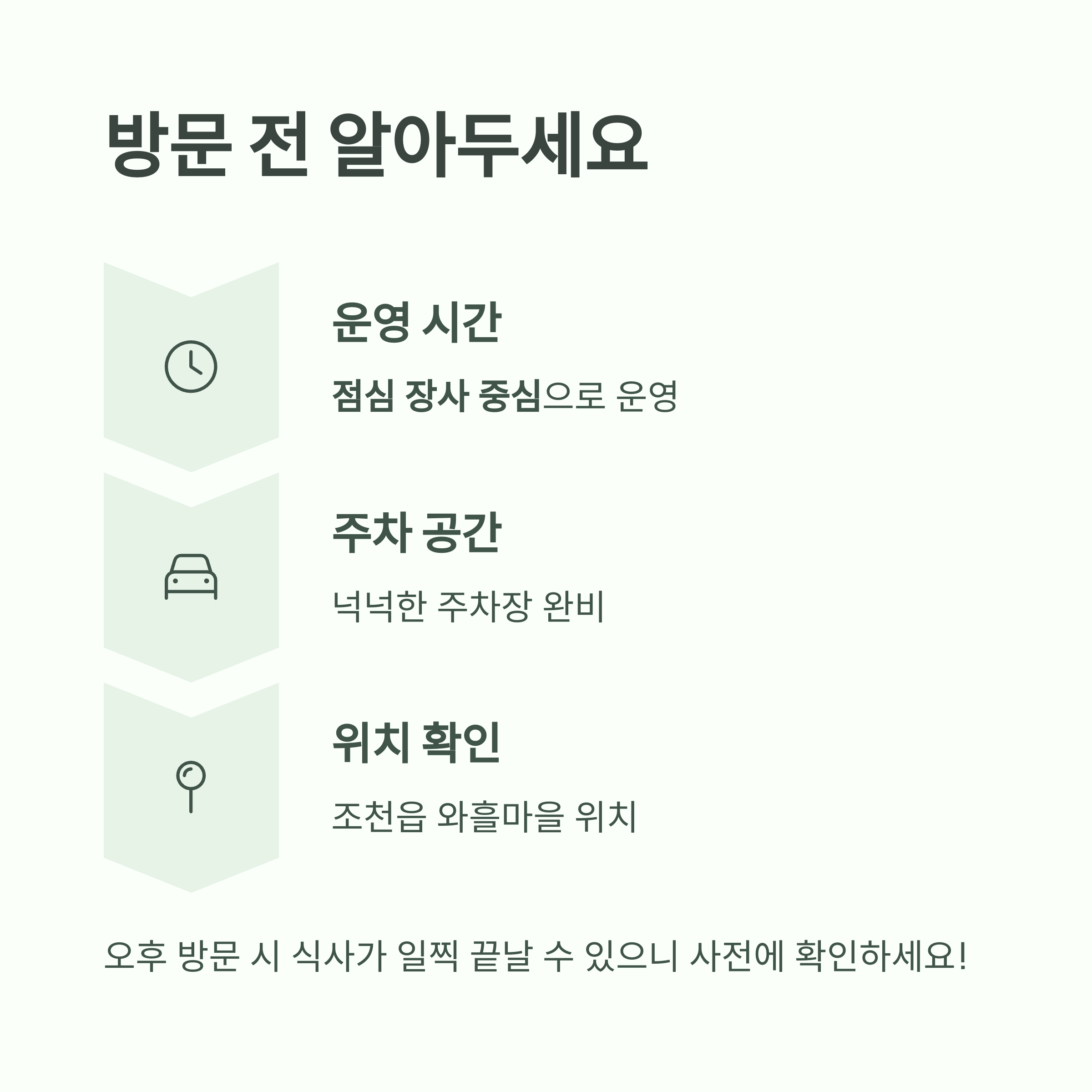 오후 방문 시 식사가 끝나는 경우가 있습니다.