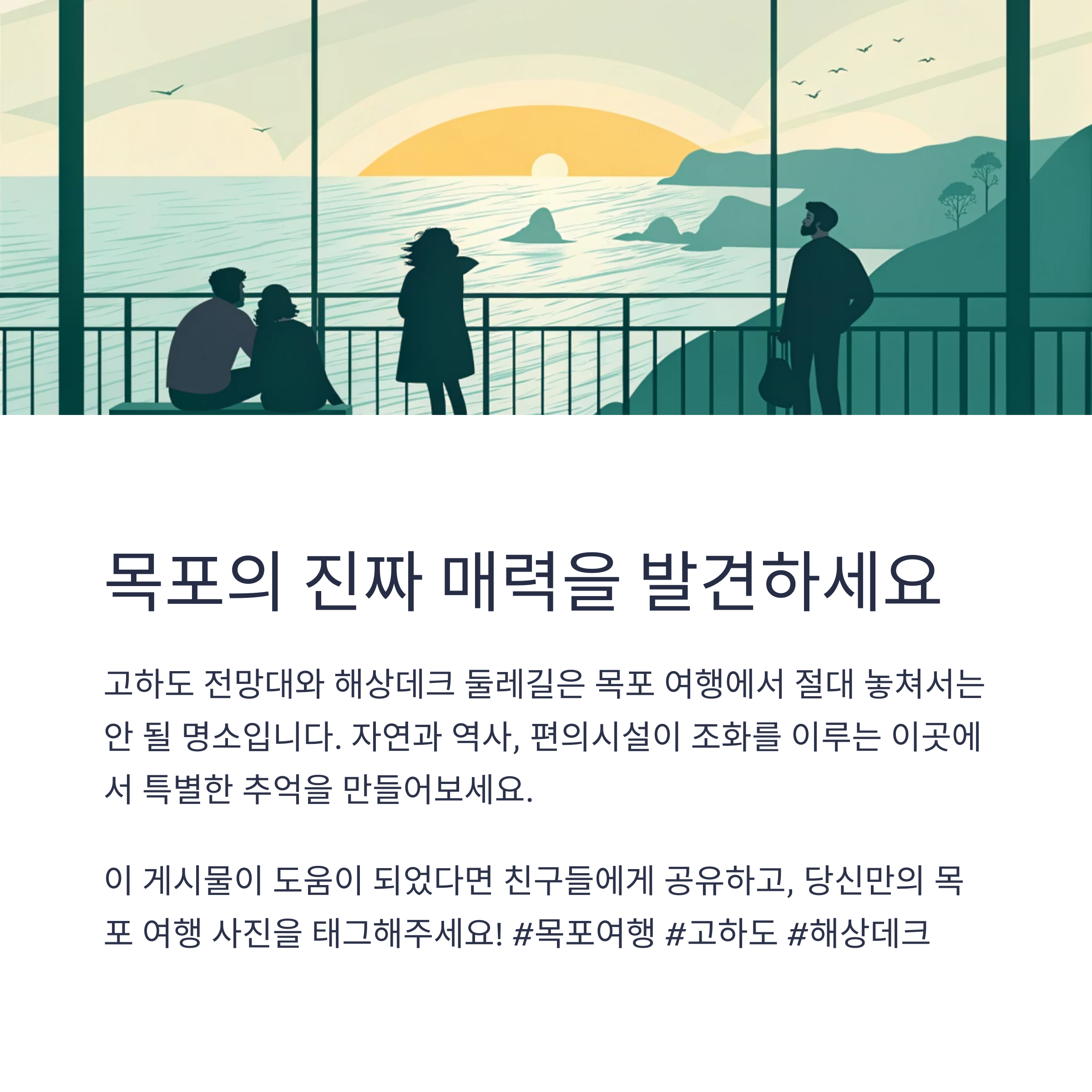 고하도 전망대와 해상데크 둘레길은 목포 여행에서 절대 놓쳐서는 안 될 명소다. 자연과 역사, 편의시설이 조화를 이루며, 남녀노소 누구나 만족할 수 있는 여행 코스를 제공한다. 특히 해상케이블카와 연계하면 더욱 효율적인 일정이 가능하다. 목포의 진짜 매력을 느끼고 싶다면, 고하도에서 하루를 시작해보자. 평범한 여행이 특별한 추억으로 남게 될 것이다.