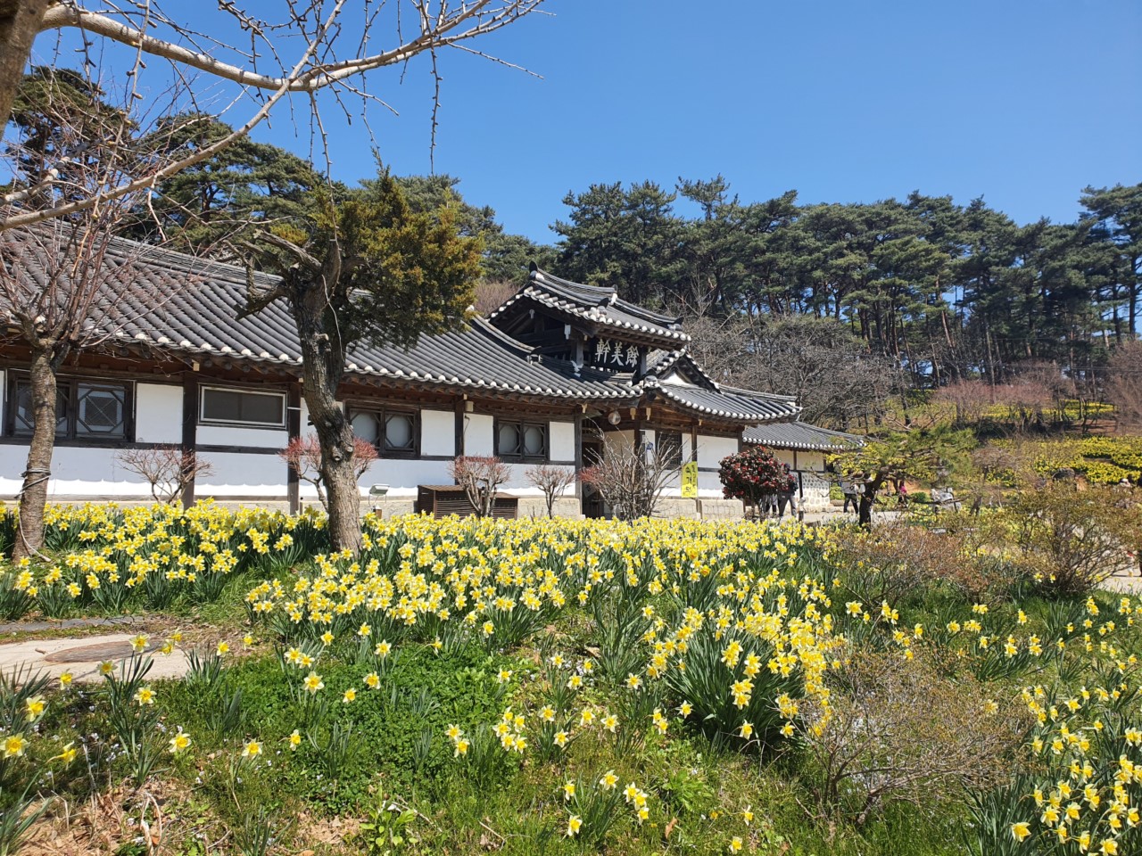 - 고즈넉한 한옥과 언덕 수선화 군락