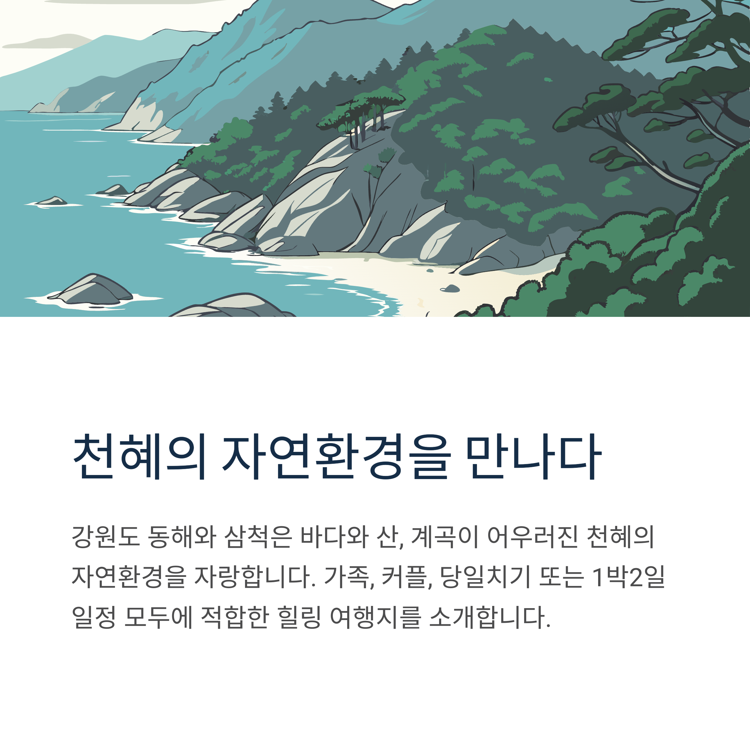 자연 속에서 힐링하고 싶은 여행자에게 알맞은 코스를 안내드립니다.