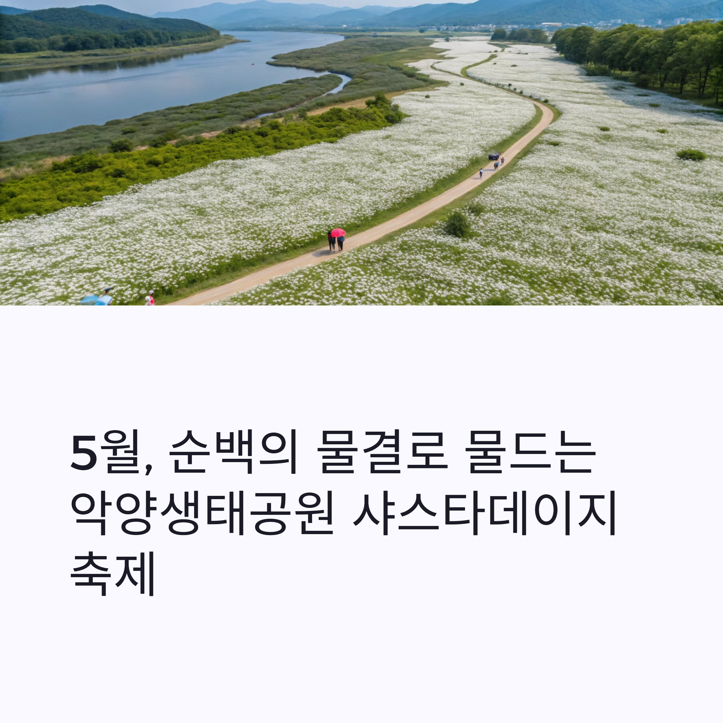 경남 함안의 악양생태공원은 5월이 되면 남강을 따라 펼쳐진 순백의 샤스타데이지 군락으로 많은 이들의 발길을 사로잡습니다.